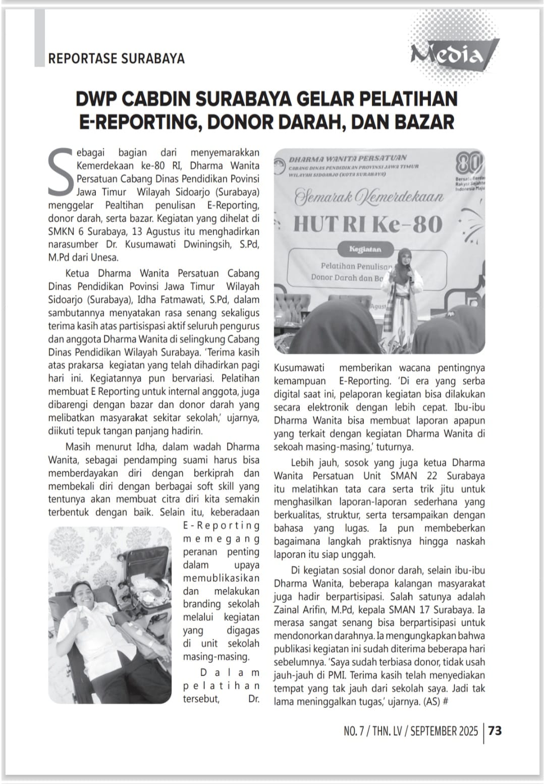 DWP CABDIN SURABAYA GELAR PELATIHAN E-REPORTING, DONOR DARAH DAN BAZAR